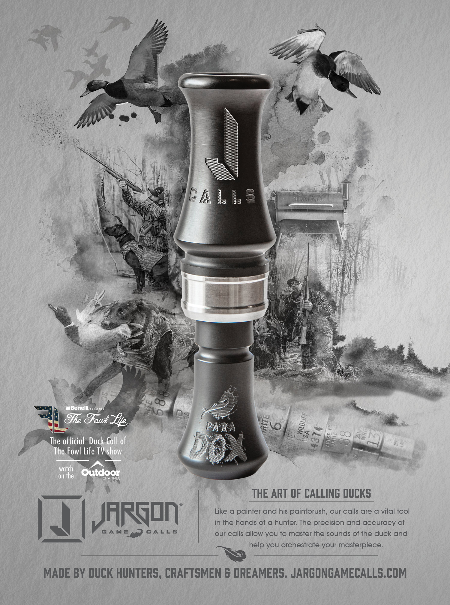 My artistic print ad graphic design for Game Call Company. My design is unlike any other you’d see in hunting publications. I used my photography from out in the field to my studio lighting photo of the duck call product.
